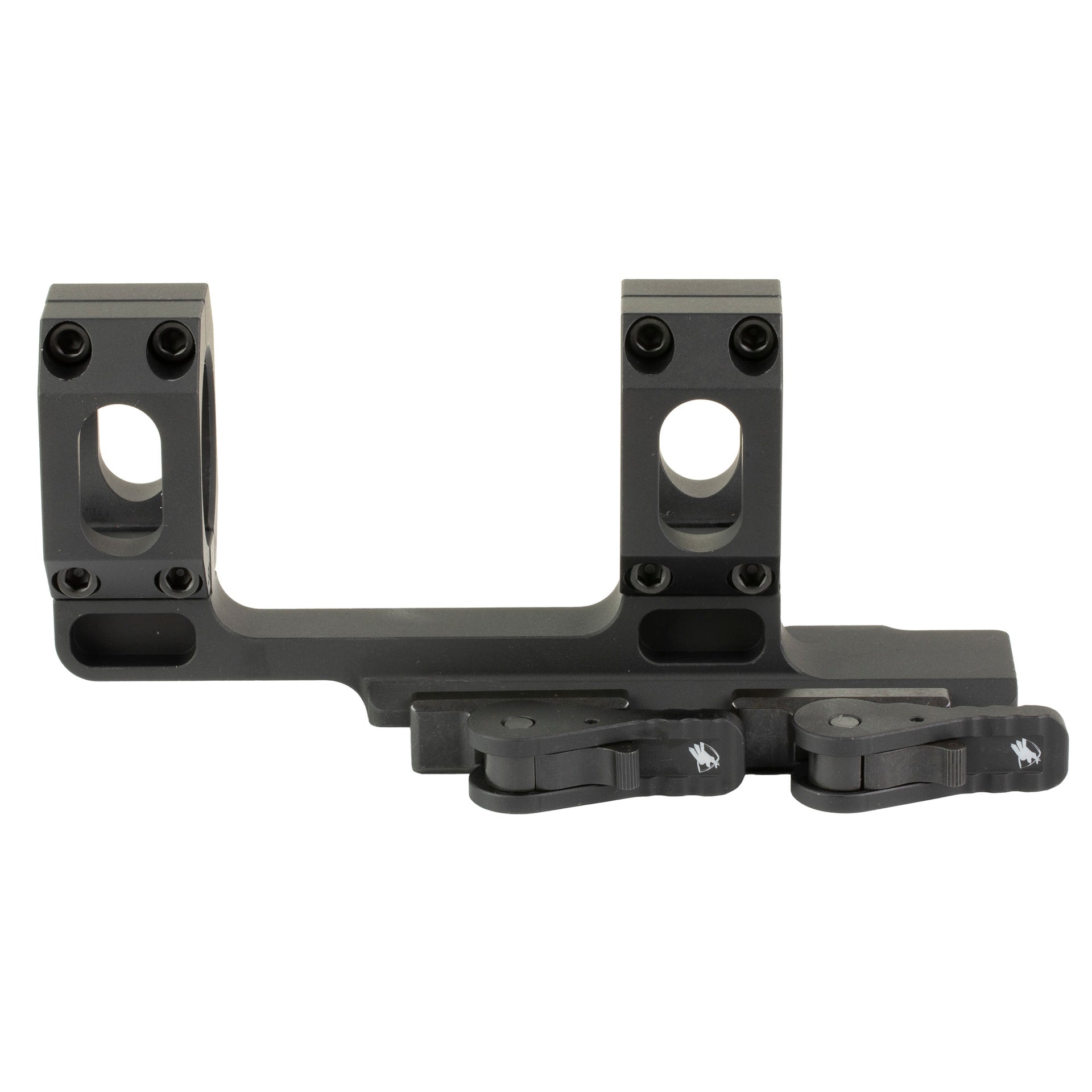 The AD-RECON-M mount is made for putting high power glass onto a flattop style AR-15. Designed to be used in conjunction with a Laser Sighting System to bring the Objective Housing high enough to clear the laser, or for shooters requiring a higher cheek weld for heads up shooting. This is the mid-height mount that they offer, the centerline height with 30mm rings is 1.64" and 1.7" with 34mm rings. The cantilever throws the scope out front with 2" offset, allowing you to get the right eye relief. It is precision machined from 6061 T6 aluminum and finished in hard coat T3 Mil-Spec anodize. It features the Patented QD Auto Lock Lever system to accommodate both in spec and out of spec rail systems.