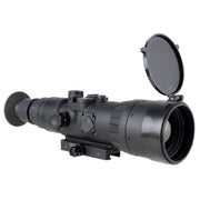 The IR-HUNTER thermal riflescope is a compact, rugged, powerful thermal optic that enables target acquisition in any light. A newly improved 640x480, 12 micron thermal sensor delivers increased sensitivity for improved image quality and target detection & recognition. The turret style controls makes nighttime operation easy, even while wearing gloves. USB-C connection port can be used to utilize external power source to extend run time. Record your hunt to share with family and friends with the integrated Digital Video Recorder with SD Card, or via the USB-C port to an external recorder. Engineered to last and built in the US