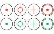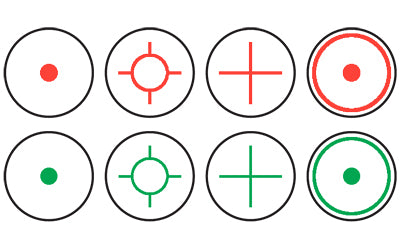 THE TACTICAL RED DOT KONUSIGHT IS NOT YOUR TRADITIONAL DOT SIGHT. It features 4 interchangeable reticle patterns that are among the most popular and versatile today. Each of the reticles can be illuminated in both, red and green. In order to accommodate all lighting conditions, you can dial up to 5 different intensities in each color. It also comes with a dual mount that fits a standard style base, as well as 3/8" grooved receivers such as those used on 22s. The look and feel is all about tactical usage. The knurled eyepiece, and the finger adjustable, tactical windage and elevation knobs offer form and function in one complete unit.