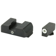 Sight set with green tritium lamp front and one green tritium lamp rear for Glocks. Designed for simple front sight acquisition while retaining rear illumination.