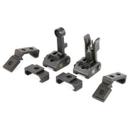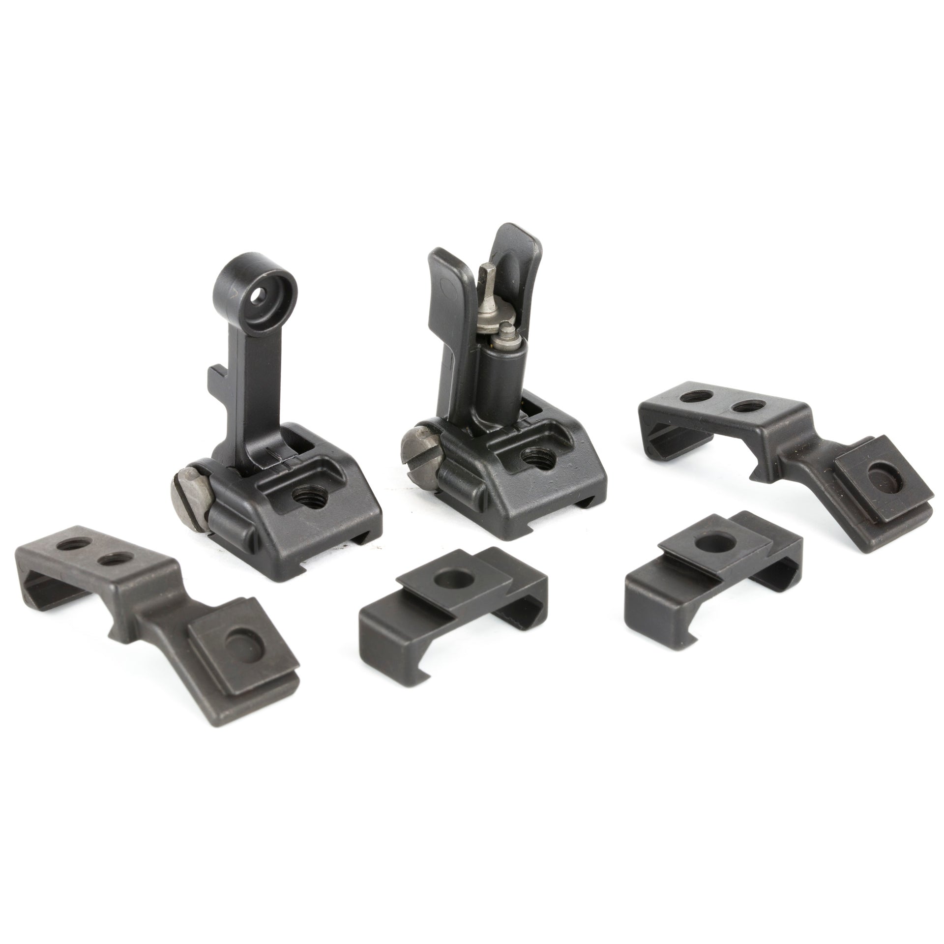 M2 Sights Deploy Kit-Griffin Armament is proud to introduce affordable Micro Modular Sights (M2) compatible with Picatinny rail systems. Griffin M2 sights offer an industry first, patent pending, modular base plate system. Constructed from QPQ Treated 17-4 and ordnance grade steel, Griffin M2 Sights were designed to be the correct product for every backup sight application. A shooter can use these durable, low profile sights in a 12 oclock mounted application while having the flexibility to reconfigure them to ambidextrous 45 degree angle sights using the alternate and available angle plates. This flexibility ensures these sights can be used by anyone and will never end up in a box of undesirable legacy kit. The full M2 deployment kit includes the front and rear sight assemblies as well as both vertical and angled bases for a complete modular system. However, sights and bases are available separately for users who wish to buy parts as needed. The front A2 sight provides elevation adjustment while ensuring maximum aftermarket support for your favorite post, be it tritium, fiber optic, match grade, or otherwise. An extremely low profile, snag resistant, slotted rear windage screw, affords easy but more importantly secure adjustability. Robust spring tension of both front and rear flip up assemblies ensures accurate repeatability every time the sight towers are actuated. Never before has a product in this category offer this degree of flexibility. Griffin M2 Sights have a minimal foot print, and are among the smallest backup sights on the market. For a mere 2 and half ounces your rifle can be equipped with a durable iron sight system, to provide aiming capability in rain, snow, or fog, on or off axis without dependence on batteries or glass.