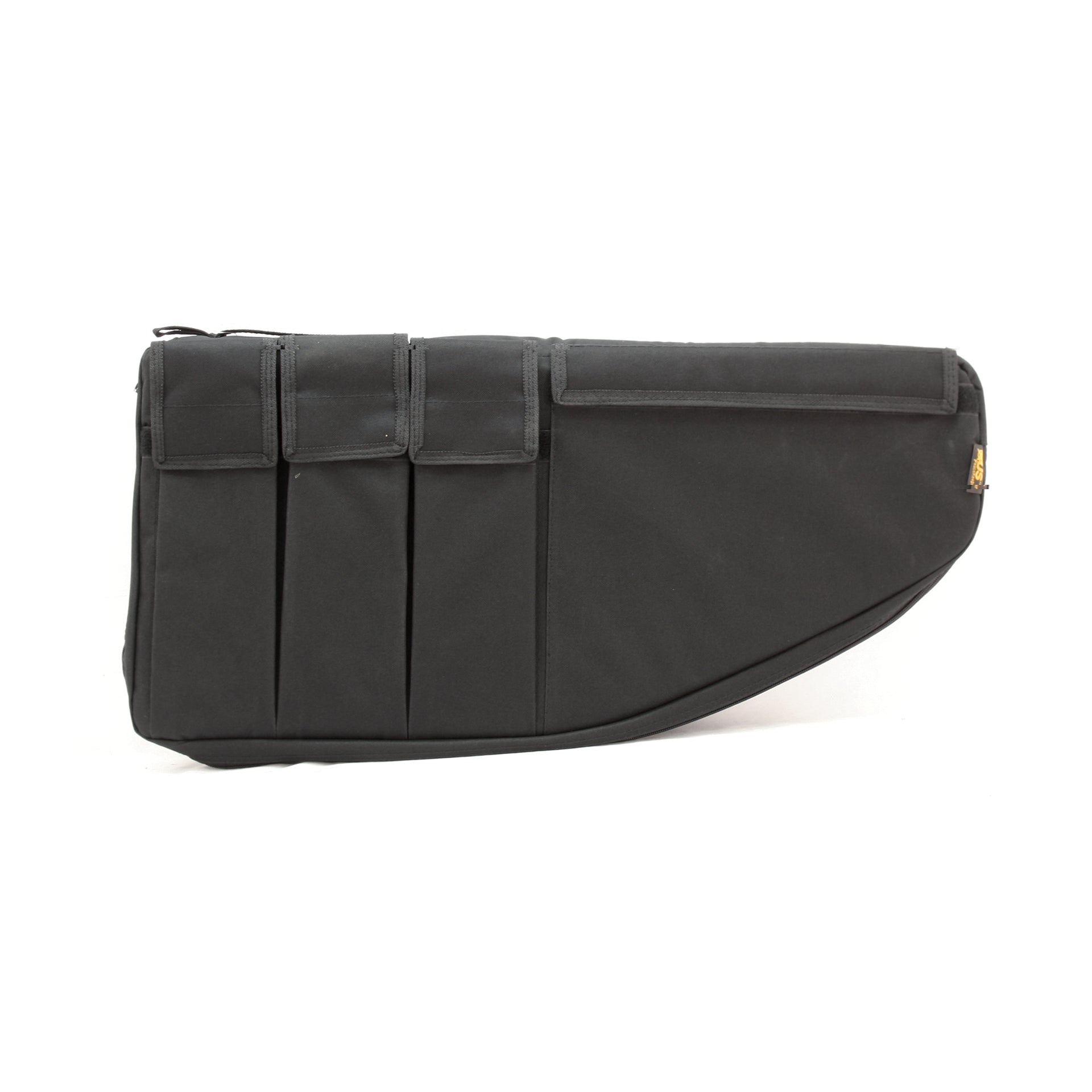This case is designed with a dual purpose. It is designed to accommodate most popular pistol caliber sub-machine guns with magazines attached or it can accommodate most short-barreled AR-type rifles with an overall length of 25" or less. Exterior pockets for magazines and other gear.