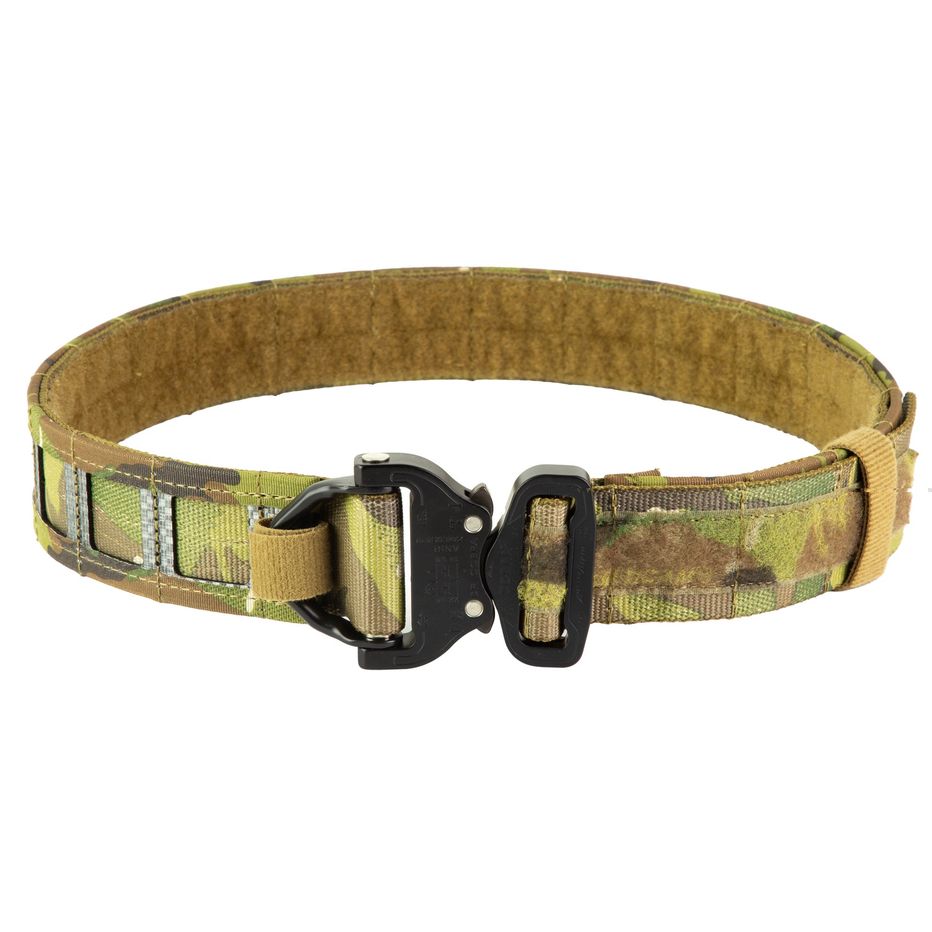The GBRS Group Assaulter Belt utilizes a 2 belt system to create a lightweight, flexible yet rigid and stable platform to attach equipment, holsters, and accessories. This is done by using Type 13, 1-23/32" belt webbing (7000 lbs. tensile strength) as the base, with a field of PALS webbing, laser cut from a semi-rigid woven thermo-polymer. This ensures that your equipment is always secured to something rigid while allowing the belt to remain lightweight and comfortable. To round it off, GBRS double ,W, stitches the webbing to a load rated, 1.75" Austrialpin Cobra buckle with a D-ring for attaching helo lanyards and other equipment. The outer belt has an inner facing of ,loop, style Velcro, to attach to a low profile ,hook, inner belt. This is done because hooks should never be worn towards the body, especially in such a high-wear area (belt line). The inner belt system consists of a low profile ,hook, inner belt with a single layer of 1.5" scuba webbing. This results in a system that doubles as a non-metallic EDC belt and is a comfortable and convenient way to cover the abrasive hook portion of the inner belt when flipped inside out. The single layer of scuba webbing allows for a rigid surface for IWB holsters to secure firmly.
