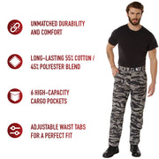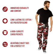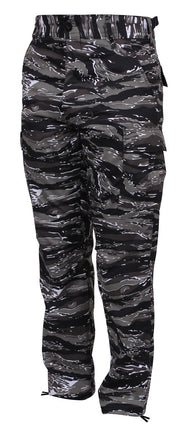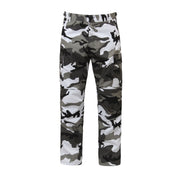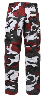 Experience over 4 decades of trusted design with our Color Camo Tactical BDU Pants. Constructed from a robust cotton / polyester fabric blend, these military cargo pants are built for unparalleled performance and comfort. Providing flexibility, strength, and plenty of pockets, these BDUs are not afraid to get down and dirty, standing up to tough challenges during field missions, tactical operations, law enforcement duties, and outdoor adventures. Tried-and-True Reliability: These tactical military uniform pants are reinforced in the seat and knees for maximum durability that endures wear and tear while supporting a full range of motion. The wear-resistant double-stitched seams provide extra strength and years of reliable use as you train, ruck, sprint, hike, and climb. High-Capacity Cargo Pockets: The camouflage EDC cargo pants provide functional utility through a spacious 6 pocket design that consists of 2 large button-down cargo pockets, 2 front slash pockets, and 2 button-down back pockets for storing tactical gear or everyday essentials like your phone, wallet, keys, or multi-tool. Utility at the Forefront: These tactical camo hiking pants feature adjustable waist tabs that enable the perfect fit. In addition, the straight leg opening fits over boots comfortably while the drawstring ankle ties allow you to easily adjust the fit. These military BDU cargo pants utilize a button closure and fly. Action Ready: Initially designed for military personnel and tactical professionals, these adaptable and reliable tactical cargo pants are great for backpacking, camping, hiking, hunting, fishing, working, public safety, skateboarding, everyday wear, and more.