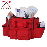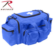 Rothco's EMT Medical Trauma Kit is packed with over 200 essential first aid supplies, perfect for first responders and emergency medical personnel. The durable EMT bag measures 22" x 11" x 11 1/2" and features a large main compartment with a removable organizer, along with 8 additional pockets and pouches for securely storing medical equipment and supplies. The shaped zipper flap opening allows for easy access to the contents, while the rear 6-loop bandolier provides space for attaching extra gear. For added convenience, the kit includes an adjustable and removable shoulder strap and a top carry handle. The top flap features a prominent white cross, making it easily identifiable in emergency situations. Please note that this item has hazmat restrictions and cannot be shipped via air freight. Contact Rothco for further shipping details. Military Trauma Kit includes: 1- 6" Elastic Bandage 5 Eye Pads, 16 - 1" x 3" Bandage Strips, 5 - 2" x 9" Abdominal Pads, 5 - 4" x 4" Sterile Gauze, 2 - Bleed Stop Bandages, 2 - 40" x 40" x 56" Triangle Bandages, 5 - Butterfly Strips, 10 - Knuckle Bandages, 3 - 12" x 30" Multi-Trauma Dressings, 5 - Ammonia Inhalants, 8 - Pairs of Examination Gloves, 2 - Casualty Blankets 84" x 52" Silver/OD, 2 - 1" Tape, 2 - Ice Packs, 5 - Tongue Depressors, 1 - EMT Shears, 1 - Tweezers, 2 - Scalpel Blades, 1 - Latex Tourniquet, 1 - Stethoscope, 2 - Sutures, 2 - Stainless Steel Hemostats, 1 - #3 Scalpel Handle, 2 - Air Ways, 1 - Cervical Collar, 1 - Pen Light, 1 - Universal Splint, 1 - CPR Mask Wound Cleaning/Misc., 10 - Aspirin Packages, 2 - 1 6 oz. Calamine Lotion, 6 - After Bite Wipes, 45 - Antiseptic Wipes, 1 - Skin & Eye Wash, 5 - Burn Aid Packages, 1 - First Aid Book, 6 - Safety Pins, 1 - 2oz. Hand Sanitizer, 1 - Hand Soap, and 10 - Triple Antibiotic Ointment Packs.