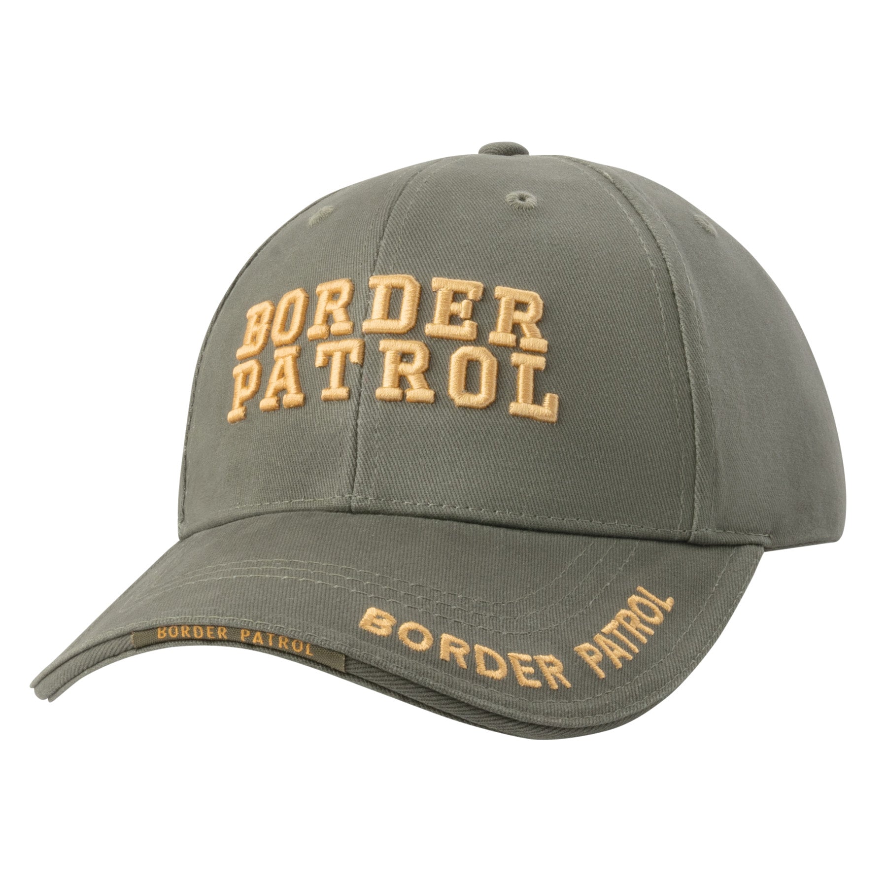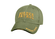 Rothco Deluxe Border Patrol Low Profile Cap Features A 100% Brushed Cotton Twill With Raised 3-D Embroidered "Boarder Patrol" Text On The Front Panel & Brim. The Cap Features A Sandwich Bill & Back Strap Insignia With Adjustable Hook & Loop Closure.