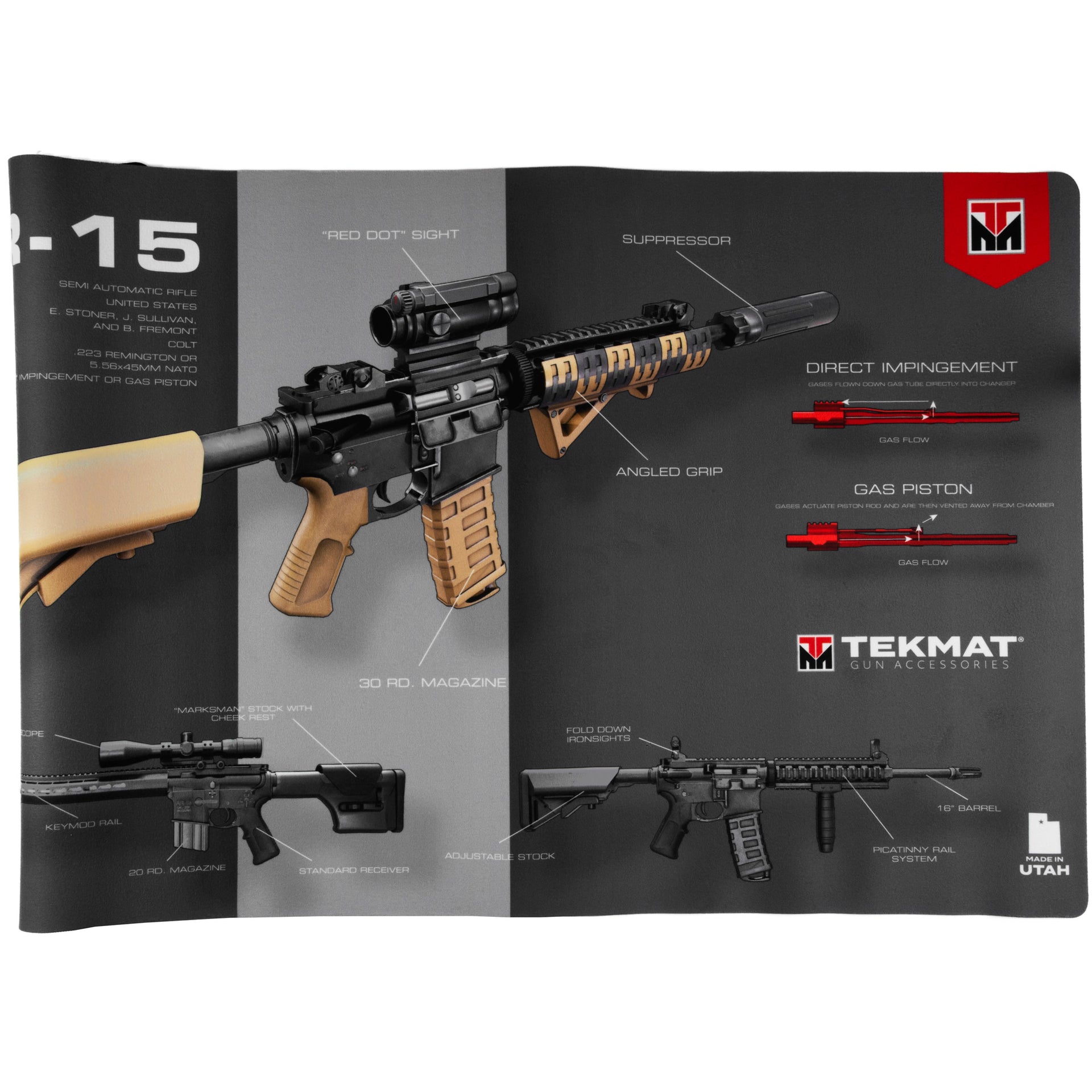 The TekMat has a soft thermoplastic fiber surface that will protect your firearm and wont stain from grease and oil. The neoprene rubber substrate gives TekMat the padding you need to keep your gun, as well as your kitchen table, safe from dings and scratches. And to take it one step further, TekMat was designed with an exploded parts diagram of your firearm so you could take the gun apart to clean it, as well as put it back together without ever having to try and find the owners manual. TekMats use a dye-sublimation printing process which embeds the ink into the surface material so you dont have to worry about the printing coming off the mat.