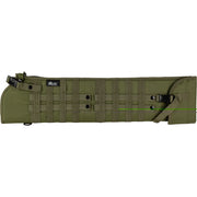 US PeaceKeeper Shotgun Scabbard is heavily padded and framed for your shotguns protection. It offers tension and straps to hold shotgun in place during movement. A folded, buckled flap of 5" can be fully extended for additional length (from 29.5"to 34.5"). Detachable shoulder strap allows for sling or shoulder-carry. Scabbard fits Mossberg 590 Shockwave, Remington 870 TAC-14, pistol grip Airsoft Shotgun, and multiple other shotguns with pistol grip or overall length less than 34".